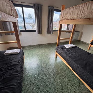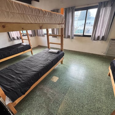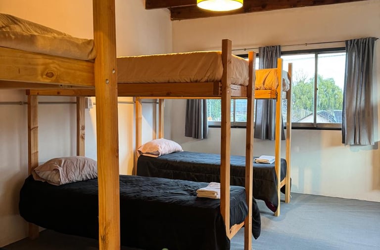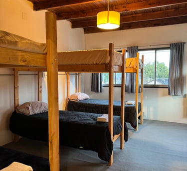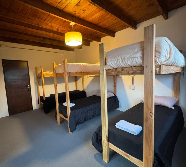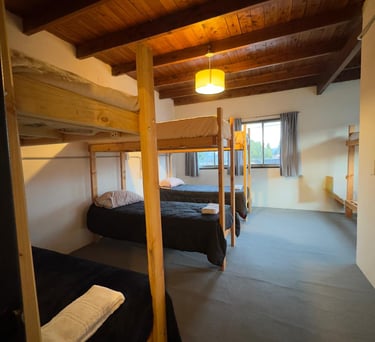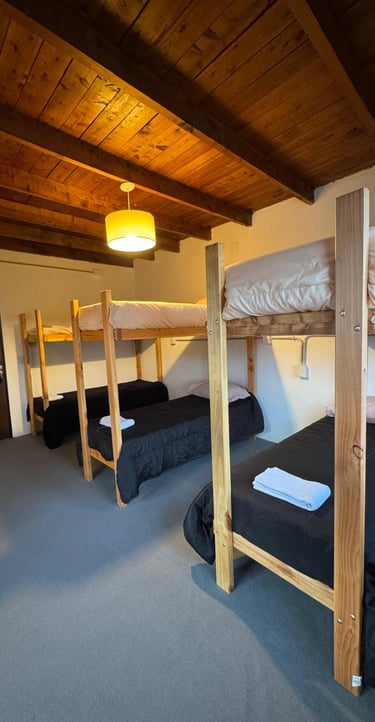 Espacio amplio para hasta ocho personas, con camas cómodas y decoración cálida que invita a relajarse tras un día de aventura, cada cama cuenta con su locker propio.