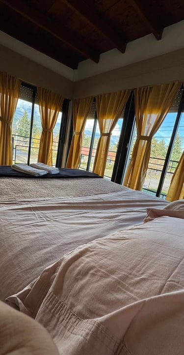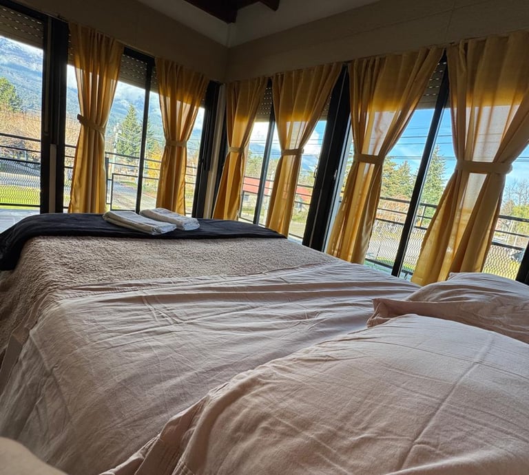 Cómoda habitación para dos personas, con luz natural y vista a las montañas, ideal para parejas o viajeros que buscan más intimidad.